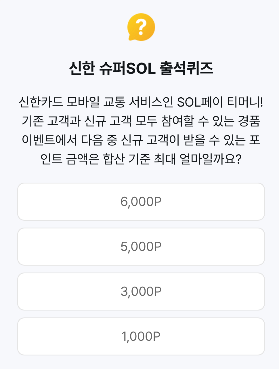 신한슈퍼SOL 출석퀴즈 : 6,000P