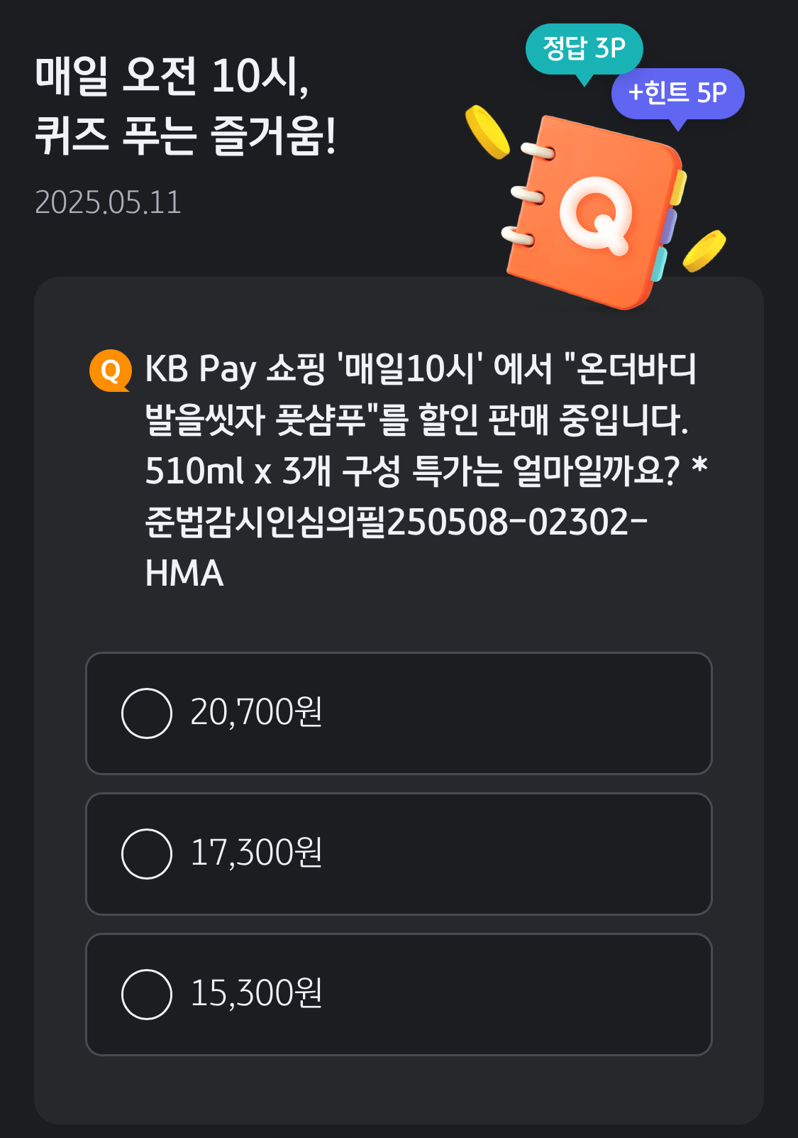 KBPay 오늘의 퀴즈 - 15,300